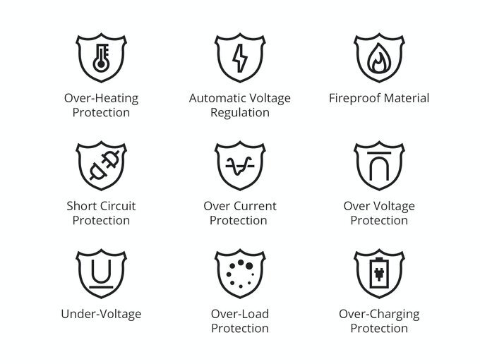 비닉(Vinnic) 파워스테이션은 안전한 리튬철인산염(LiFePO4) 배터리를 사용하여 긴 제품 수명과 방열 등 안전 기능을 포함하고 있습니다. 공인된 인증기관을 통해서 진동, 열 충격, 장기 고온, 소음, 포장 낙하 및 액세서리 코드 굽힘을 포함하여 1000개 이상의 검사를 마쳤습니다.