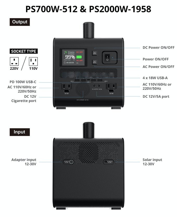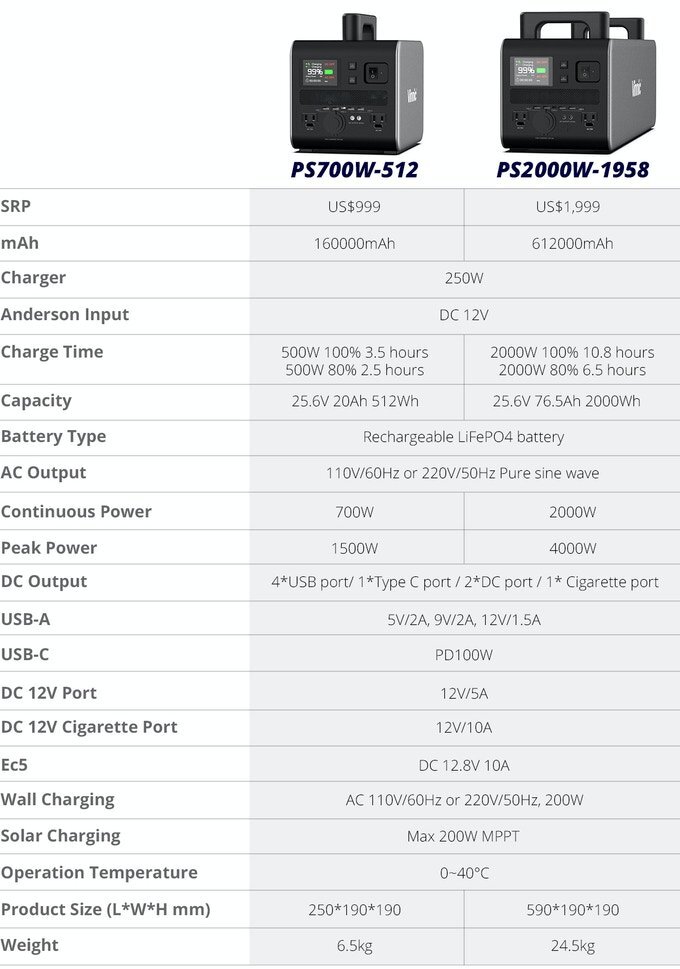 · 2가지 사양으로 PS700W는 512Wh, PS2000W는 1958Wh