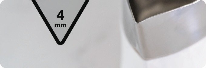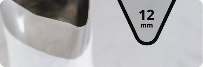 세가지 크기의 주둥이 외에도 우유의 정확한 양을 맞출 수 있도록 눈끔이 표시되어 있고, 스티머가 쉽게 열과 거품을 만들도록 바닥을 라운드 형태로 만들었습니다.