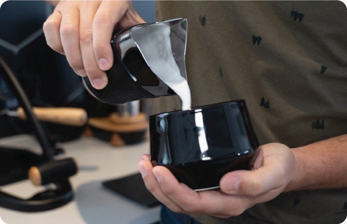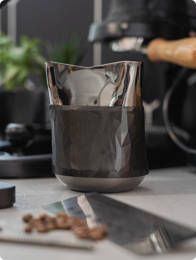 스티머로 스팀을 만들때도 크루브 크리에이트(KRUVE CREATE)는 유용합니다. 점점 가늘어지는 구조와 둥근 바닥을 가지고 있어 매번 완벽한 미세거품이 가능하며 우유 스팀 과정을 빠르게 가속합니다.