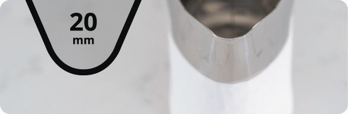 디테일을 살리고 싶을 때 스팀피쳐의 주둥이가 가늘어야 하지만 초보자에게는 넓은 것이 편할 수도 있습니다. 숙련도에 따라 달라집니다. 크루브 크리에이트(KRUVE CREATE)는 수년간 설계와 테스트로 만들어진 세가지 주둥이를 가진 스팀피쳐 입니다. 라떼아트를 다양하게 연습해 볼 수 있으며, 손잡이가 없어 더욱 섬세한 양조절이 가능합니다.