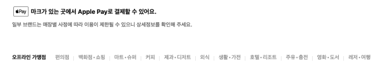 매장에서 직접결제를 할 경우 애플페이 마크가 있는 곳에서 결재가 가능합니다.